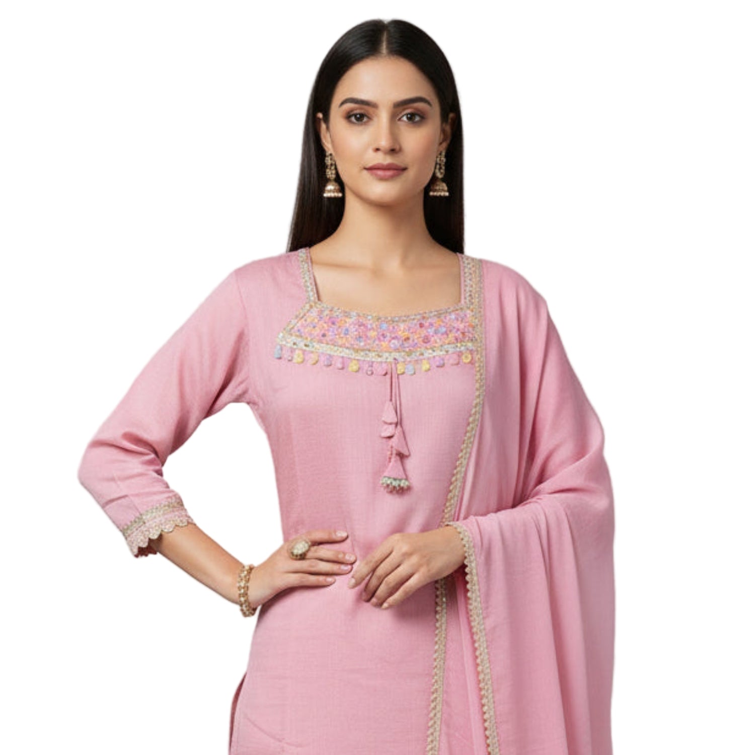 Elegant Magenta Velvet Kurta Set with Dupatta – Festive & Party Wear