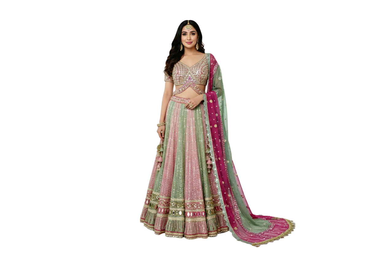 Pink & Green Ombre Embroidered Lehenga Choli | Designer Party Wear Outfit