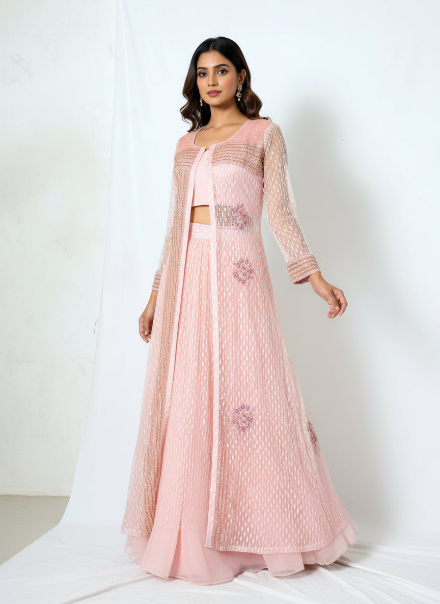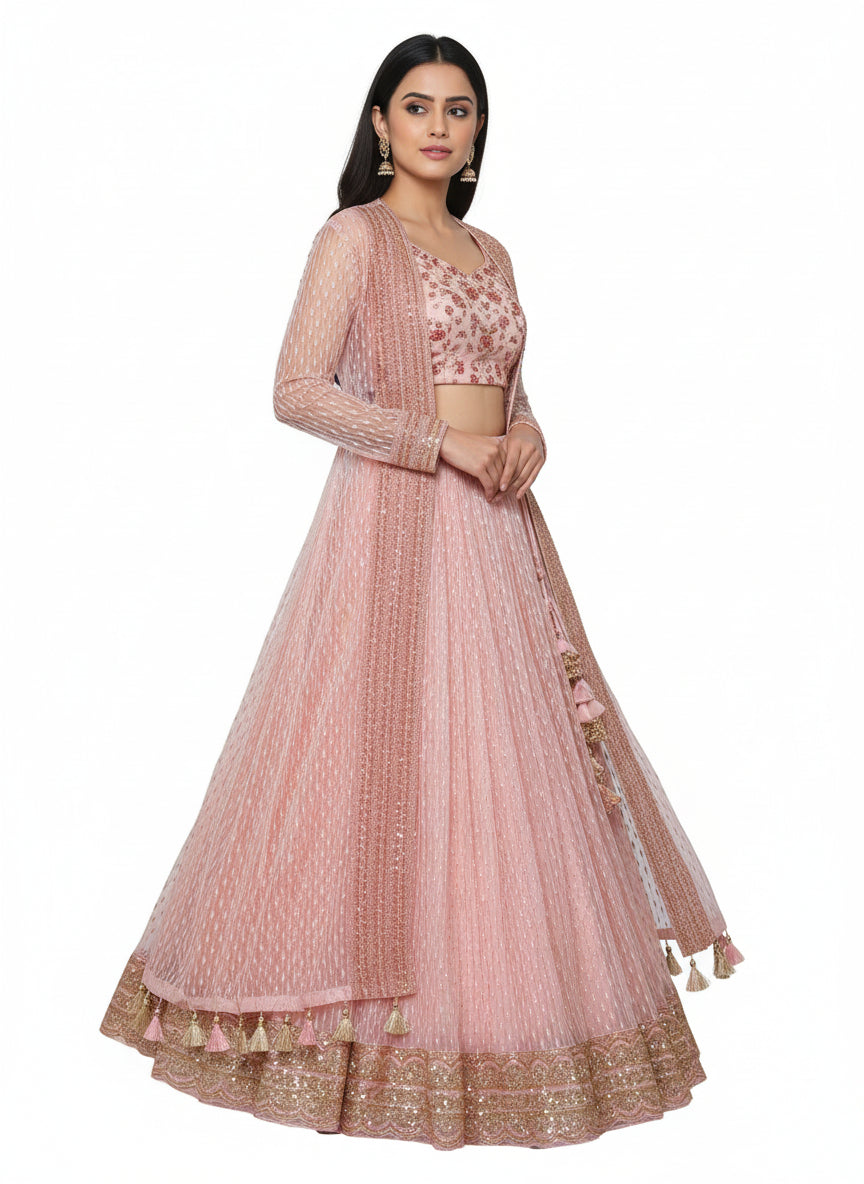 Peach Embroidered Designer Lehenga Set with Sequins and Beaded Dupatta