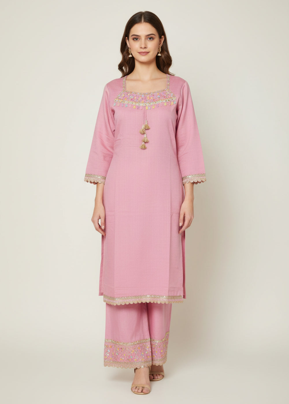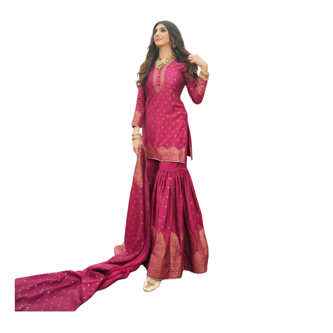 Elegant Magenta Velvet Kurta Set with Dupatta – Festive & Party Wear