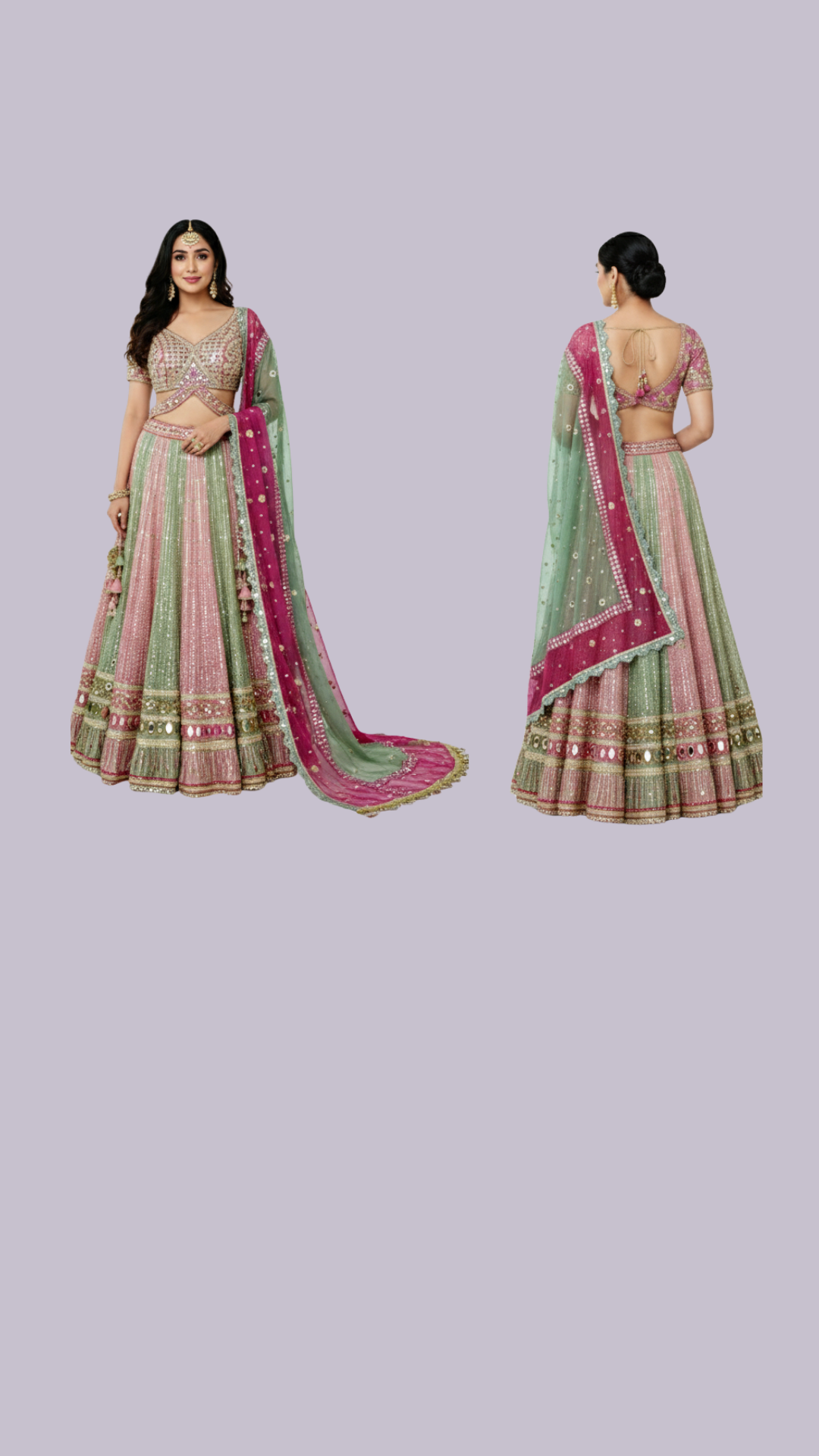 Pink & Green Ombre Embroidered Lehenga Choli | Designer Party Wear Outfit
