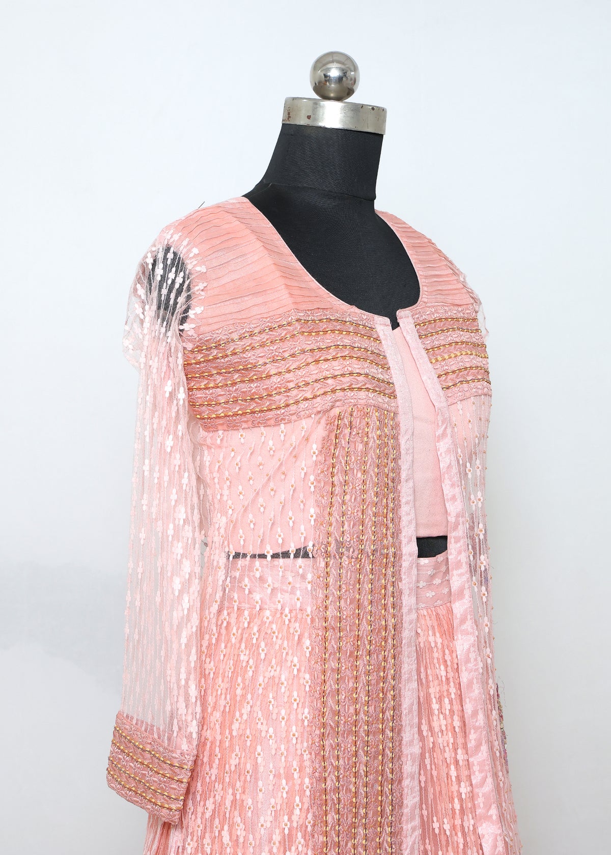 Light Peach Embroidered Anarkali Gown Set with Dupatta